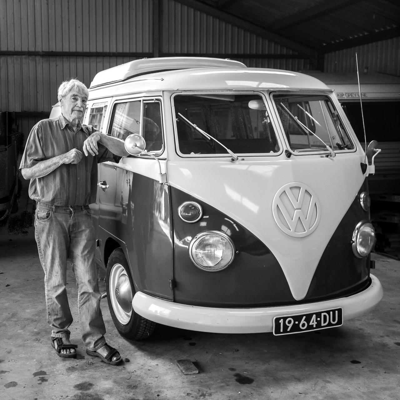 Hier een foto van hem, genomen toen wij samen eind vorig jaar zijn antieke VW camperbus in de winterstalling gingen zetten en het me lukte hem op de foto te zetten. Ah pa, nog eentje, dan ben ik klaar! Het was een leuke dag.